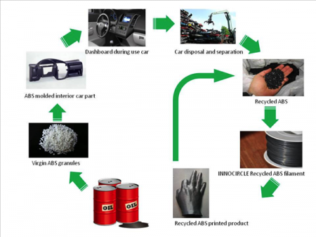 科技的发展一方面给人类带来极大便利,另一方面也产生了更多的废弃物和塑料垃圾,后者成为很多科学家和工程师们头疼的问题,包括CIORC公司的老板JanWillemSlijkoord。他认为使用回收塑料制造的InnoCircle3D打印线材为塑料工业创建了一个“封闭的循环”,显著改善了3D打印领域可持续发展的机会。关于处理ABS和PET的两个“封闭的循环”,Slijkoord做了详细解释。