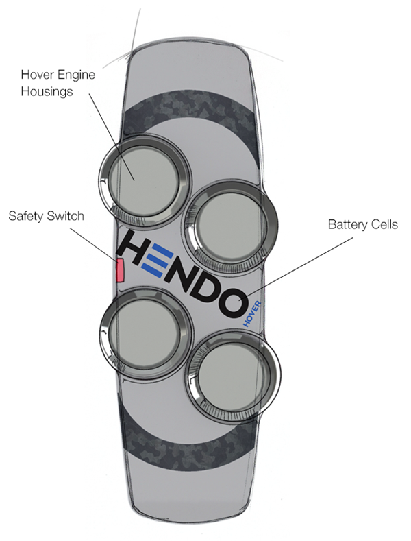 滑板可漂浮于铝或铜等导电材质的U型滑道,主要基于“磁场架构”(Magnetic Field Architecture)技术,而动力由滑板底部的4个圆形具磁性的引擎提供。