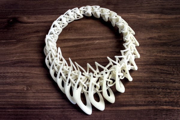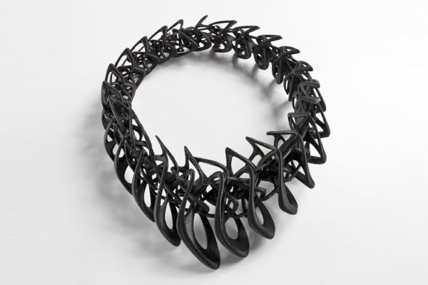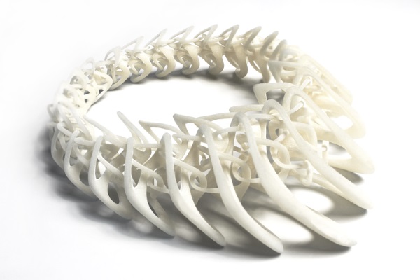 这套名为LACE的设计作品,由25件各具特色的3D打印可穿戴式设计组成,主要是项链和戒指。为首的LACE设计是一件Tangens项链,它可以是黑色、白色或半透明色。这件繁复的设计是由很多互锁件连在一起组成的,是Stratasys公司的Fortus 400mc FDM 3D打印机用柔性尼龙材料制作的。该Tangens项链售价850美元。