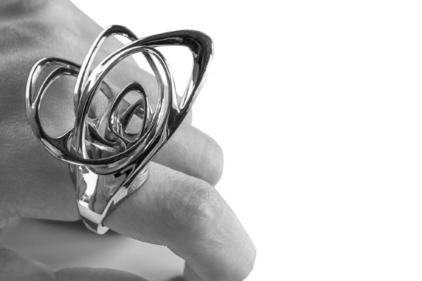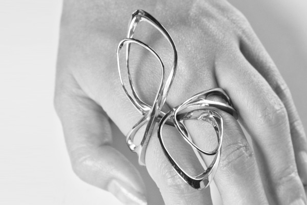Wu还与Stratasys的子公司Solidscape合作制造了Papilio(凤蝶)指环,猛一看去,这个指环犹如蝴蝶张开翅膀,展翅欲飞。据创客联盟了解,Wu先是使用Solidscape MAX²3D打印机打印出Papilio的蜡模,然后再用纯银以失蜡法铸造出来,完成后手工打磨出光泽。3D打印的Papilio指环售价为1000美元。