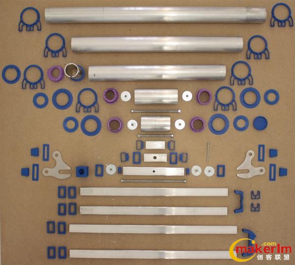 Jigless Kit包含PLA材质的3D打印部件外,还含有一套完整的预切光铝管。打印所有套件后,安装将非常简单,只需要用到一个螺丝钉。