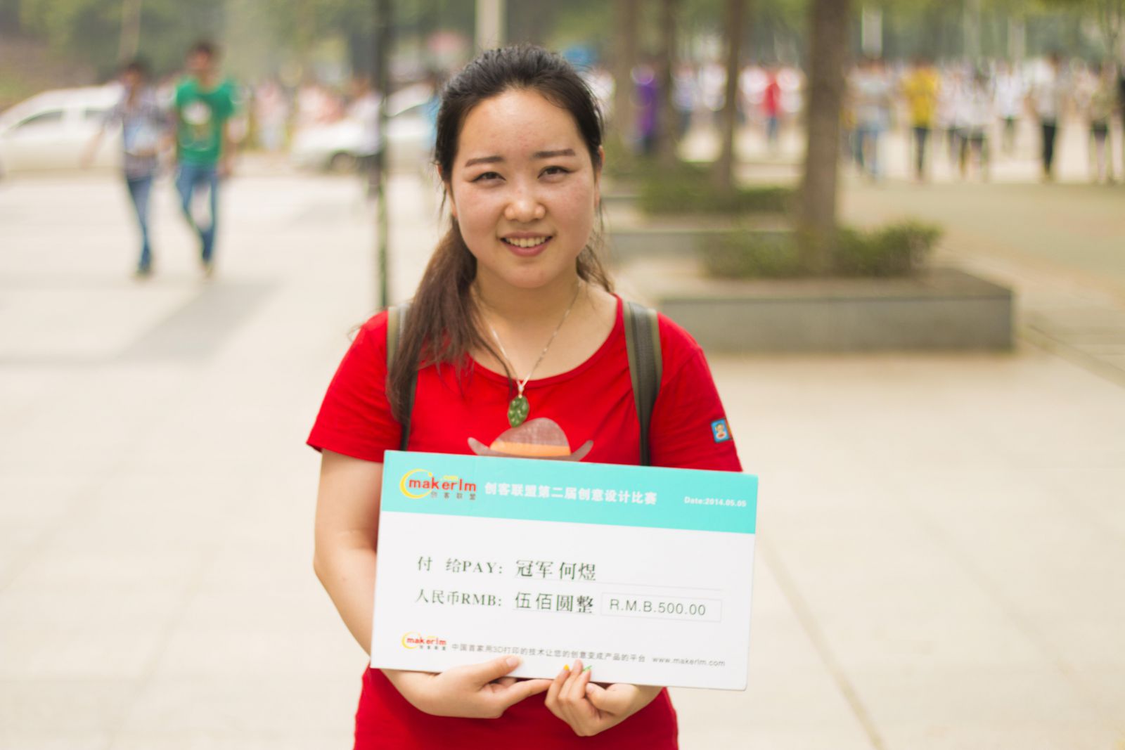 90后湖北工业大学阳光女生在所有宿舍舍友的怀疑和犹豫下,第一个投创意给创客联盟,第一次投创意就获得冠军,她说:奖金与奖杯是对她设计能力的认可和价值的体现,创客联盟,我选择相信,所以我快乐